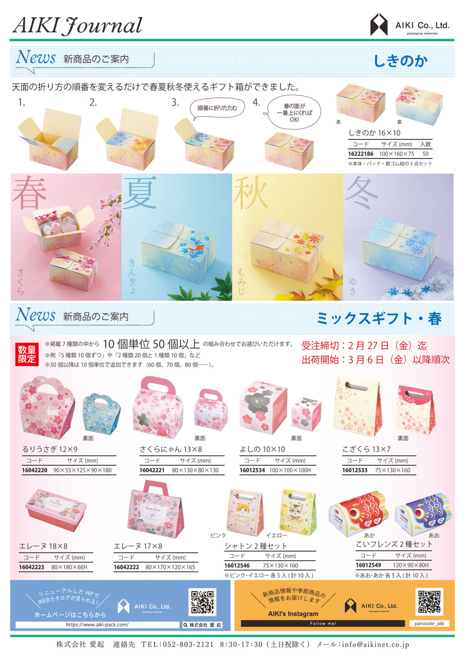東海3県を中心に長年の実績。和洋菓子、ベーカリー、カフェ、テイクアウト用資材は愛起へお任せ下さい