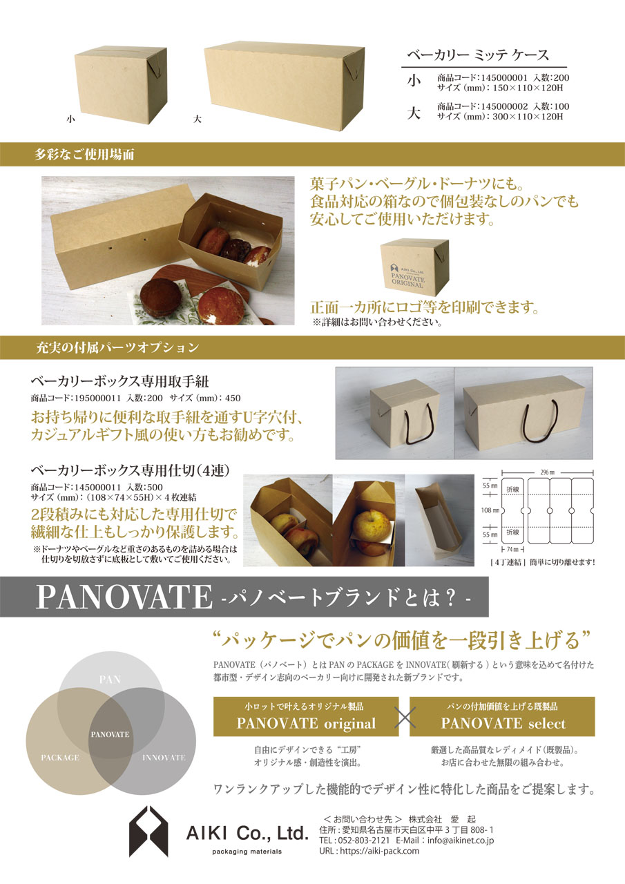 東海3県を中心に長年の実績。和洋菓子、ベーカリー、カフェ、テイクアウト用資材は愛起へお任せ下さい