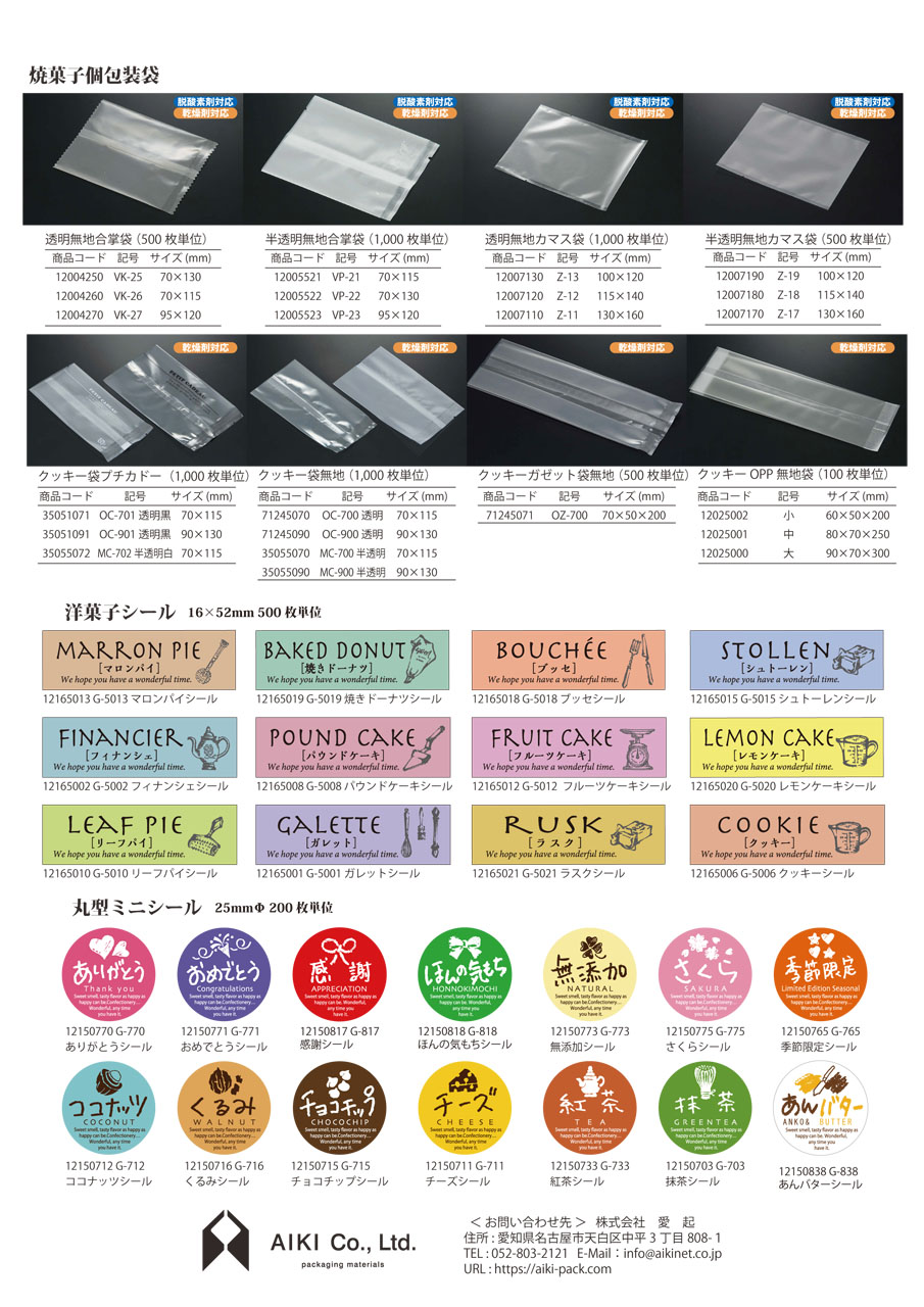 東海3県を中心に長年の実績。和洋菓子、ベーカリー、カフェ、テイクアウト用資材は愛起へお任せ下さい